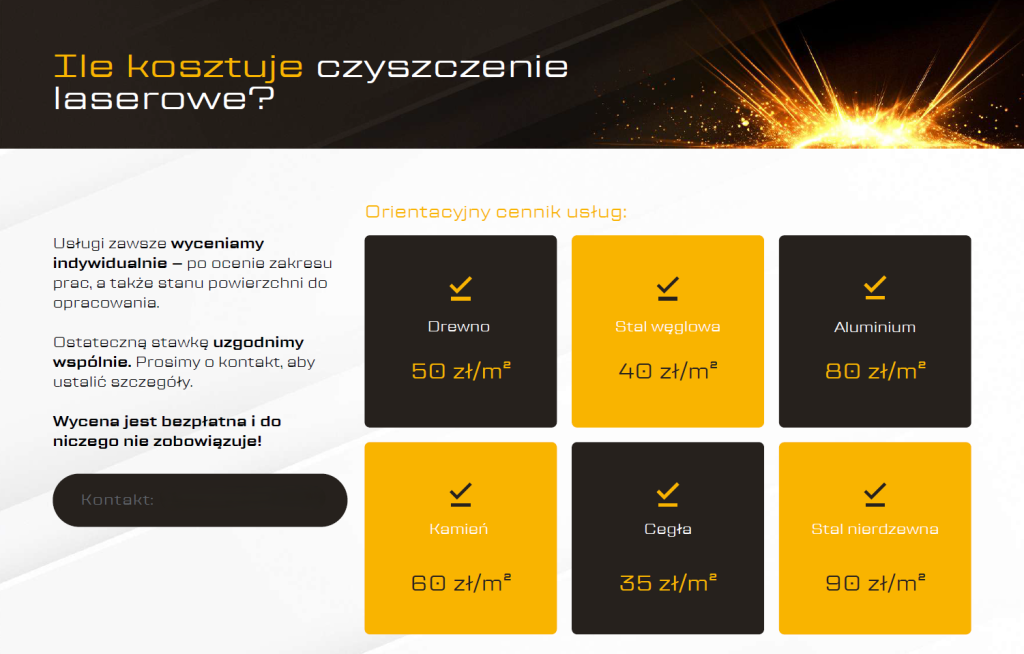 Nieatrakcyjna oferta handlowa z dużym prawdopodobieństwem pozostanie bez odpowiedzi. Atrakcyjna – może zadecydować o powodzeniu współpracy. Z tego faktu doskonale zdawał sobie sprawę nasz klient, który świadczy usługi czyszczenia laserem i który zgłosił się do nas z prośbą o przygotowanie oferty handlowej.